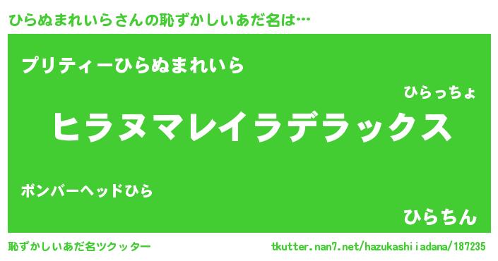| 意味不明あだ名 | 『自称ひらぬまれいら』 |