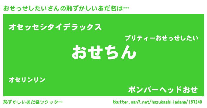 | ヒーロー風カッコイイあだ名 | 『ネオオセッセシタイ』『仮面オセダー』 |