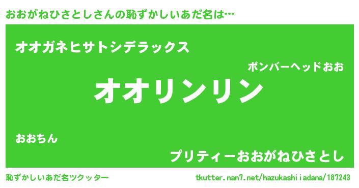 | 意味不明あだ名 | 『とにかく怪しいおおがねひさとし』 |