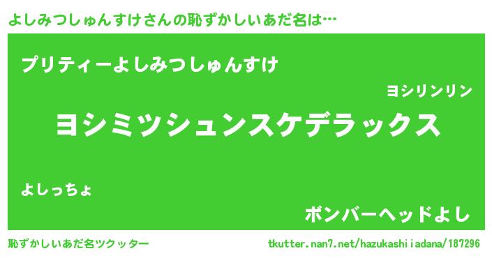 | 意味不明あだ名 | 『住所不定無職よしみつしゅんすけ(41歳)』 |