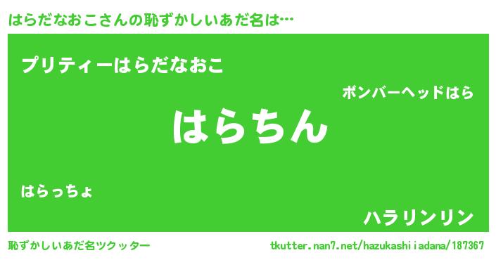 | 意味不明あだ名 | 『永久保存はらだなおこ』 |