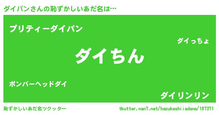 | ヘコむあだ名 | 『ダイパン(笑)』『ダイにゅー』 |