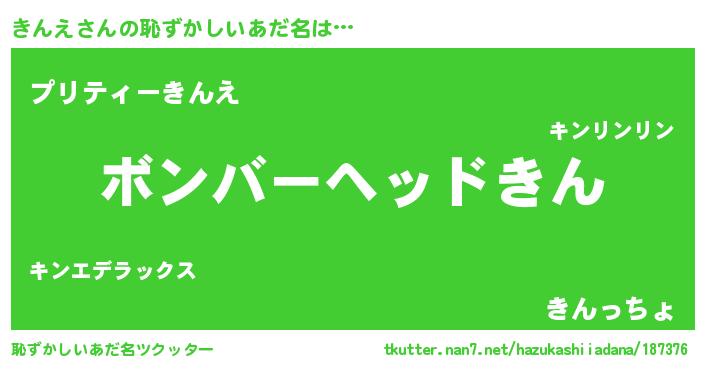 | 意味不明あだ名 | 『めかぶ科きんえ属』『ペロリンきんえ』 |