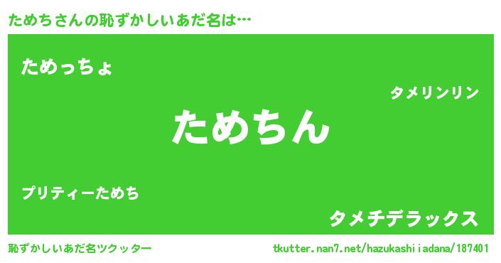 | 意味不明あだ名 | 『住所不定無職ためち(12歳)』『自称ためち』 |