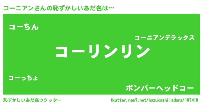 | 意味不明あだ名 | 『とにかく怪しいコーニアン』 |