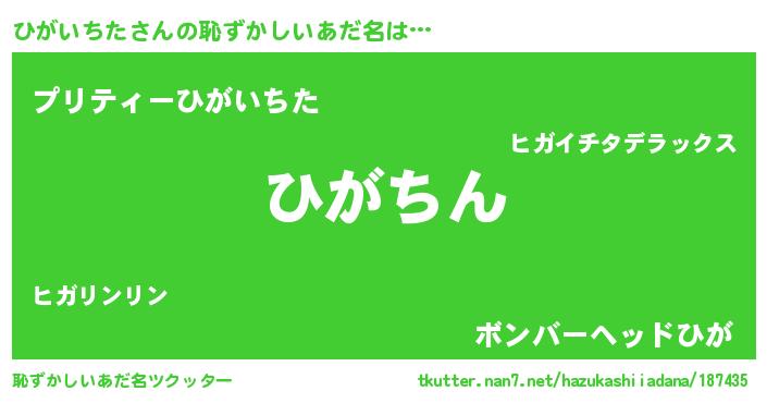 | ヘコむあだ名 | 『ひがいちた(震え声)』『ひがふぇ~』 |