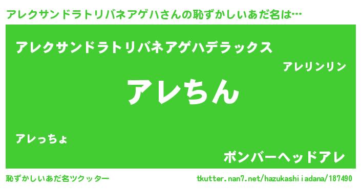 欧米人風あだ名 | 『ダルビッシュアレクサンドラトリバネアゲハ』 |