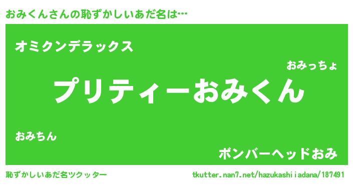 | 男性向けラノベタイトル風あだ名 | 『おみくんの憂鬱』 |