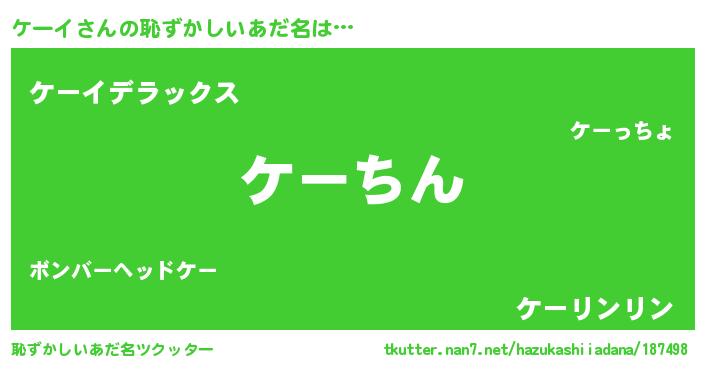 | 意味不明あだ名 | 『永久保存ケーイ』『自称ケーイ』 |