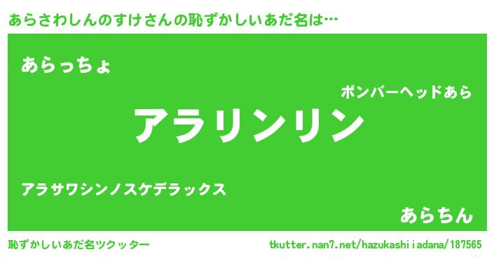 | 欧米人風あだ名 | 『ウサインあらさわしんのすけ』 |