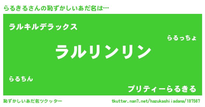 | ヘコむあだ名 | 『らる太郎』『らるにゅー』『つくし』 |