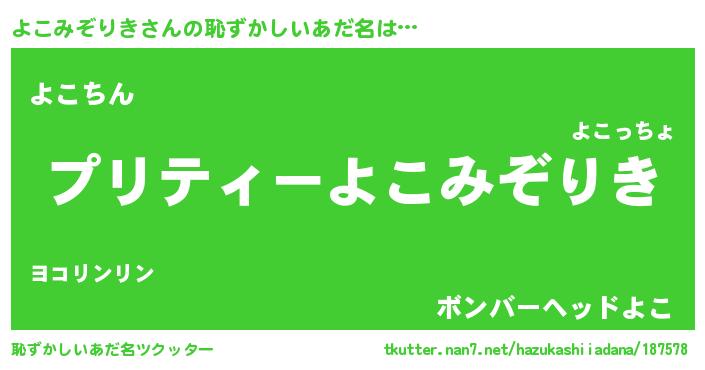 | 男性向けラノベタイトル風あだ名 | 『よこみぞりきの憂鬱』 |
