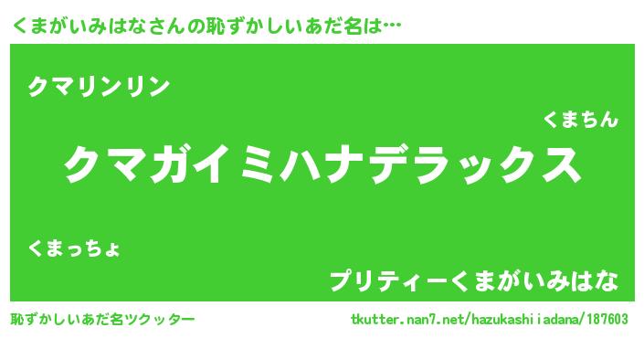 | 意味不明あだ名 | 『自称くまがいみはな』 |