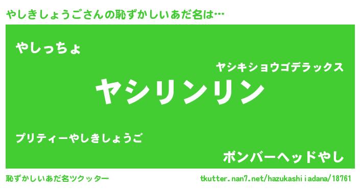 | ヘコむあだ名 | 『やしっぺ』『豆乳』『やしにゅー』 |