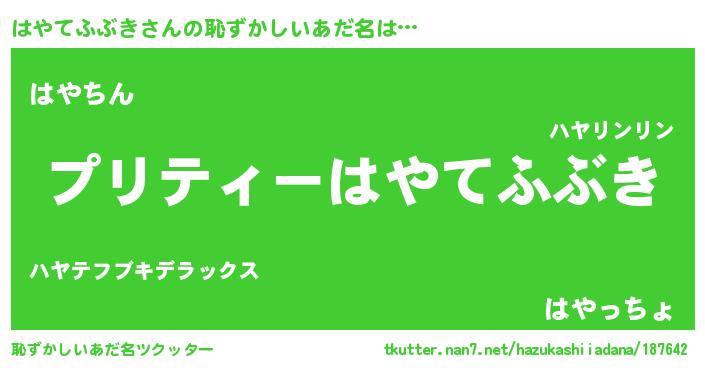 | ヘコむあだ名 | 『はやっふぃ~』『はやてふぶき(笑)』 |