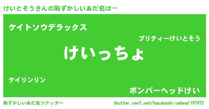 | ヘコむあだ名 | 『酢こんぶ』『けいにゅー』『けいを』 |