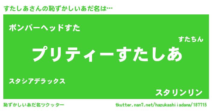 | 意味不明あだ名 | 『ペロリンすたしあ』『永久保存すたしあ』 |