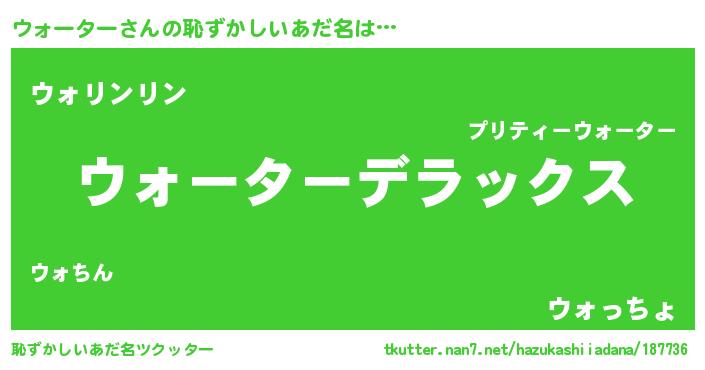 | 男性向けラノベタイトル風あだ名 | 『Re:ウォーターから始める異世界生活』 |