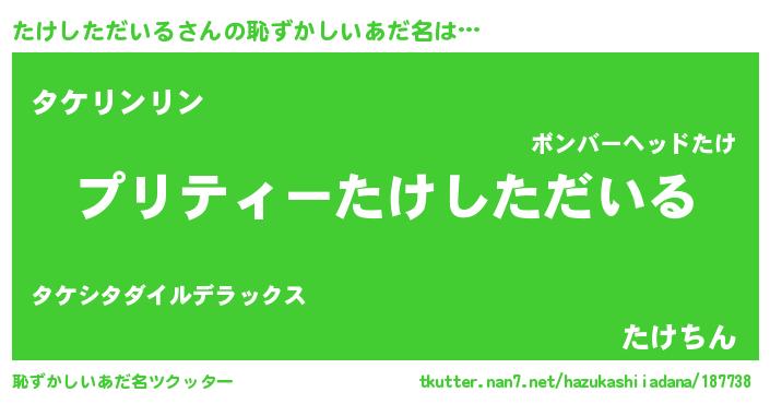 | ヘコむあだ名 | 『たけにゅー』『たけを』『豆乳』 |