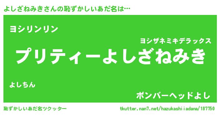| 胡散臭い通販商品みたいなあだ名 | 『必ず成功する霊験あらたかなお札…その名も「よしざねみき」』 |