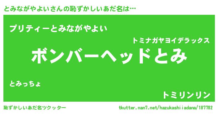 | 男性向けラノベタイトル風あだ名 | 『おまえをオタクにしてやるから、俺をとみながやよいにしてくれ! 』 |