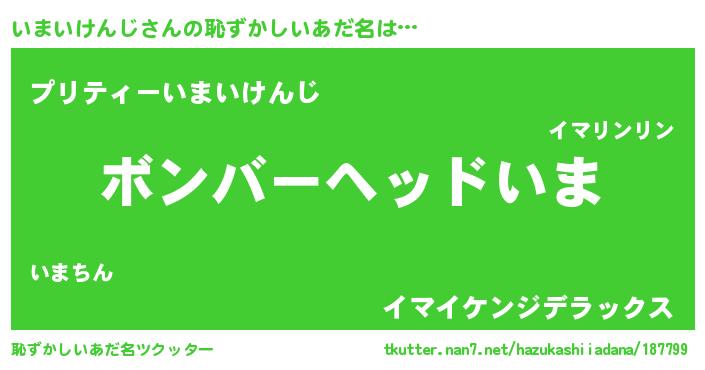 | 男性向けラノベタイトル風あだ名 | 『転生したらいまいけんじだった件』 |