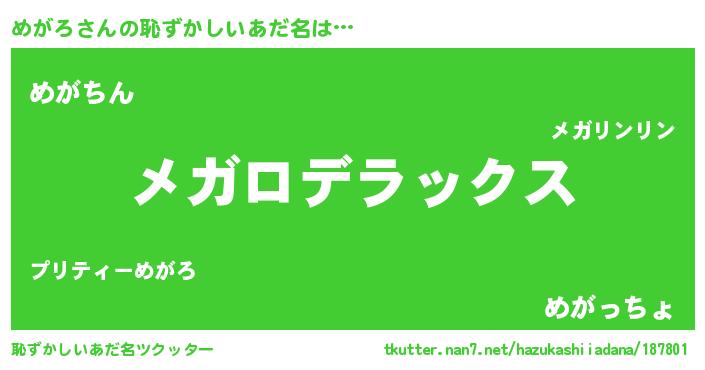 | ヘコむあだ名 | 『めがろ(小並感)』『つくし』 |