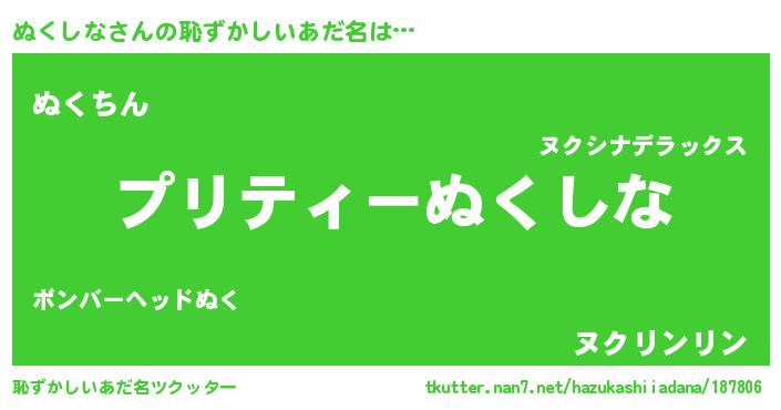 | ヘコむあだ名 | 『ぬくにー』『ぬくしな(苦笑)』 |