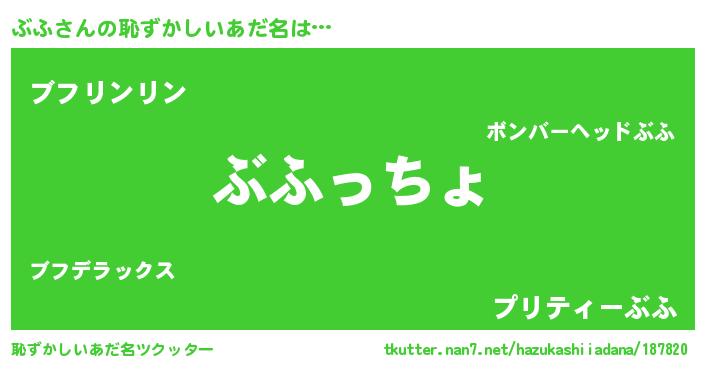 | 意味不明あだ名 | 『ぶふフォーエバー』『ペロリンぶふ』 |