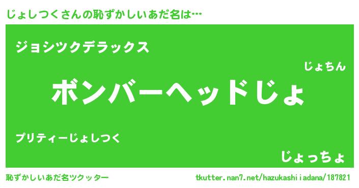 | ヒーロー風カッコイイあだ名 | 『慈愛の使者じょしつく』『仮面ジョダー』 |