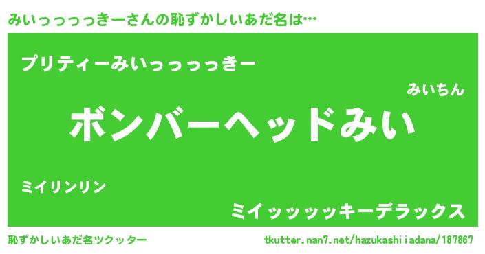 | ヒーロー風カッコイイあだ名 | 『慈愛の使者みいっっっっきー』 |