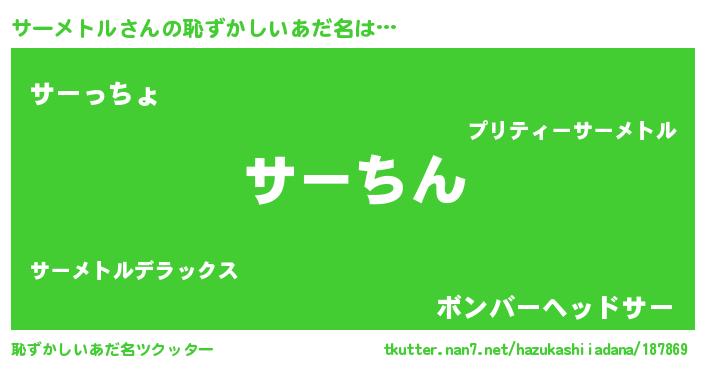 | 意味不明あだ名 | 『住所不定無職サーメトル(62歳)』 |