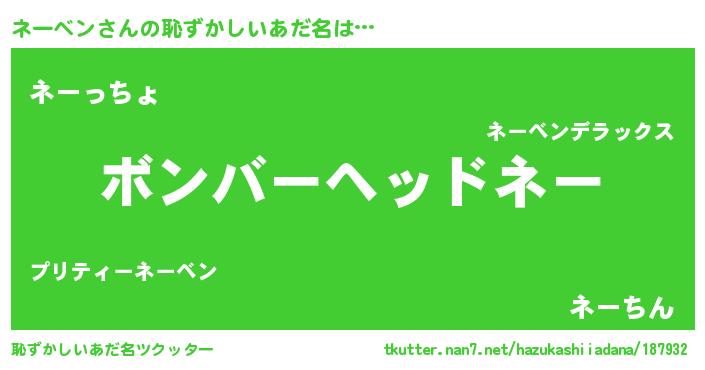 | 意味不明あだ名 | 『住所不定無職ネーベン(5歳)』 |