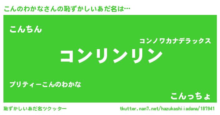 | ヘコむあだ名 | 『こん太郎』『こんのわかな(震え声)』 |