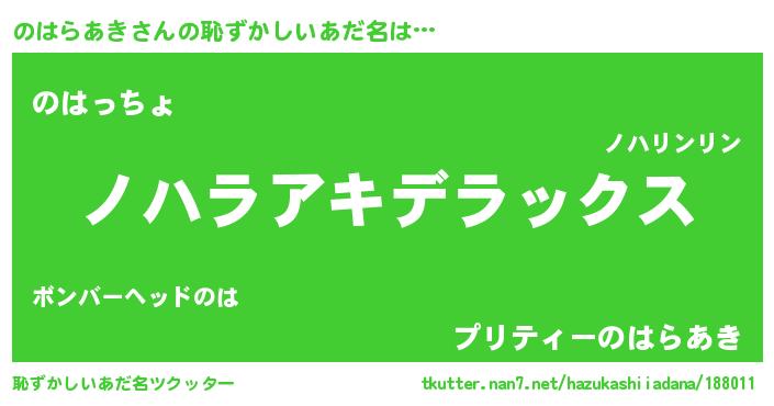| ヘコむあだ名 | 『酢こんぶ』『のはにー』『のはっ子』 |