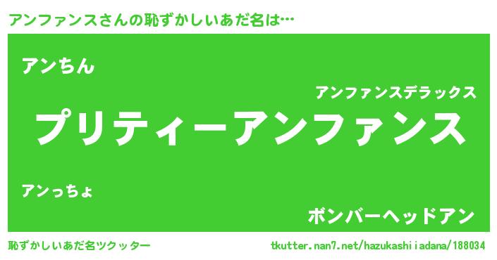 | ヘコむあだ名 | 『アンもー』『アンファンス(爆)』 |