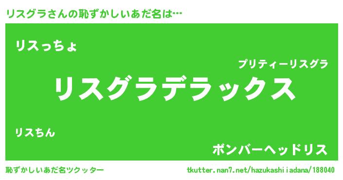 | 意味不明あだ名 | 『つくし科リスグラ属』『自称リスグラ』 |