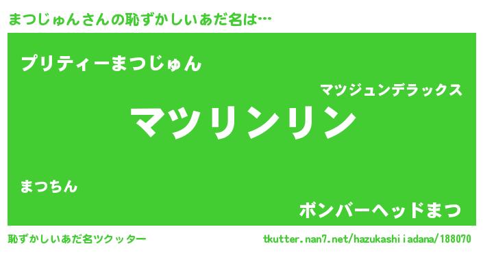| ピコ太郎風あだ名 | 『マツ四郎』『マコ五郎』『ママ太郎』 |