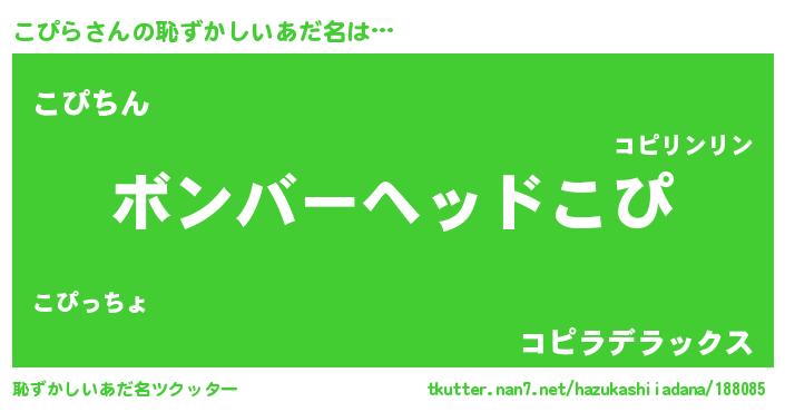 | ヘコむあだ名 | 『こぴら(震え声)』『こぴ太郎』 |