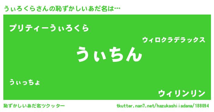 | ヒーロー風カッコイイあだ名 | 『ネオウィロクラ』『スーパーウィロクラ』 |