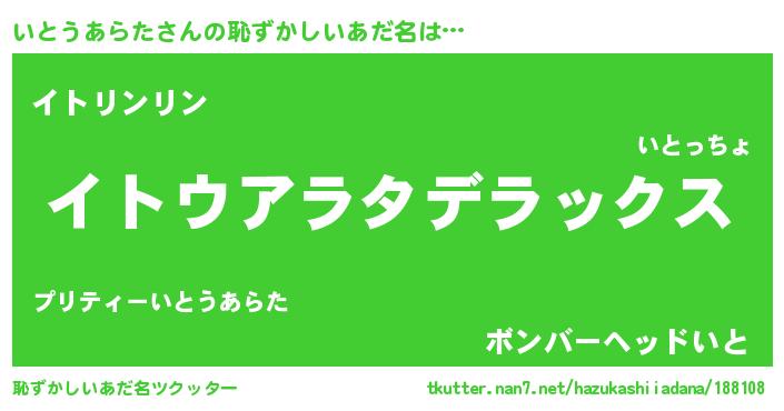 | 胡散臭い通販商品みたいなあだ名 | 『テレビで話題の高麗人参…その名も「いとうあらた」』 |
