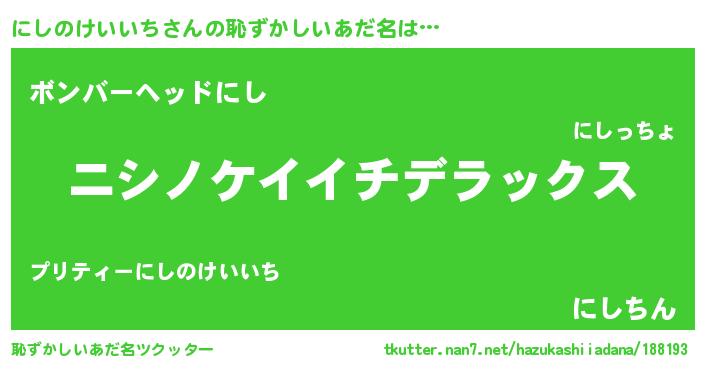 | 意味不明あだ名 | 『自称にしのけいいち』 |