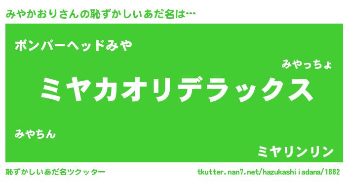 | ヒーロー風カッコイイあだ名 | 『仮面ミヤダー』『天空の使者みやかおり』 |