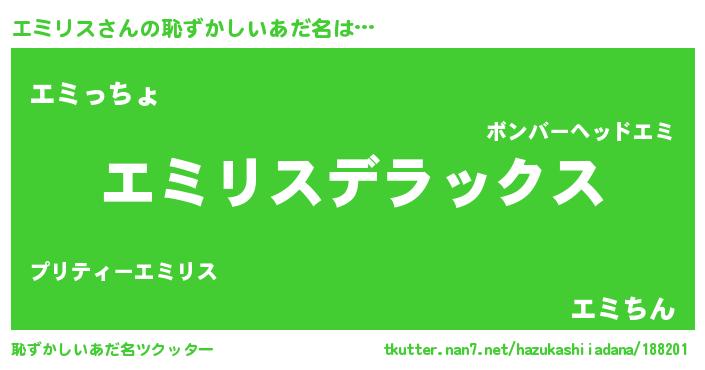 | 意味不明あだ名 | 『自称エミリス』『エミリスフォーエバー』 |