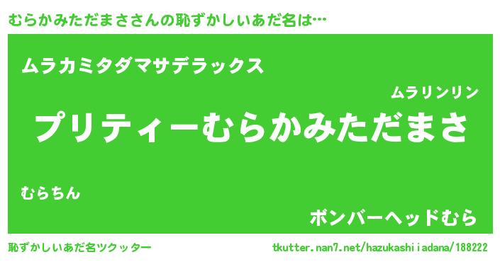| ヒーロー風カッコイイあだ名 | 『スーパームラカミタダマサ』 |