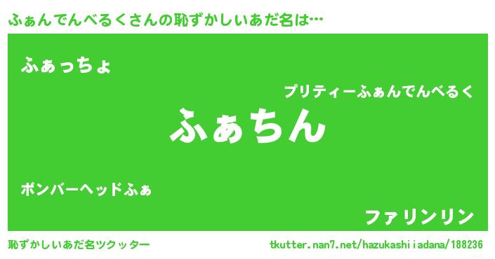 | 欧米人風あだ名 | 『アンジェラ・ふぁんでんべるく』 |