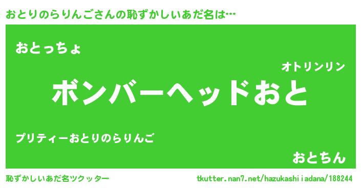 | 欧米人風あだ名 | 『ダニエルおとりのらりんご』 |