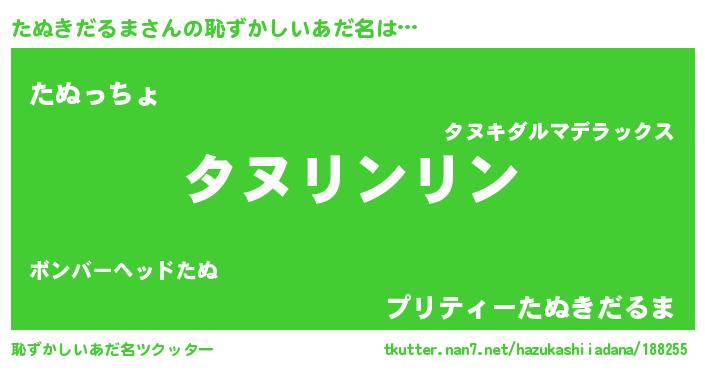 | ヒーロー風カッコイイあだ名 | 『暗黒騎士タヌ』『スーパータヌキダルマ』 |