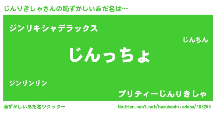| 意味不明あだ名 | 『じんりきしゃフォーエバー』 |