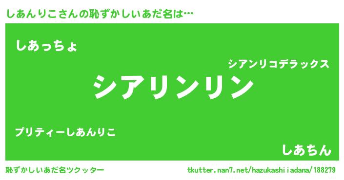 | 男性向けラノベタイトル風あだ名 | 『この素晴らしい世界にしあんりこを!』 |
